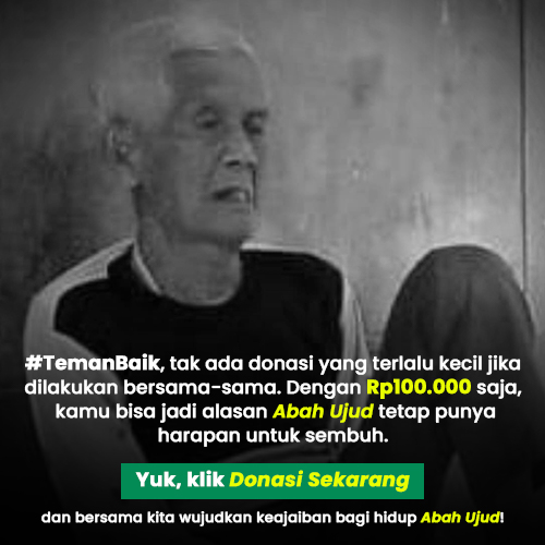 #TemanBaik, tak ada donasi yang terlalu kecil jika dilakukan bersama-sama. Dengan Rp100.000 saja, kita bisa jadi alasan Abah Ujud tetap punya harapan untuk sembuh. Yuk, klik Donasi Sekarang dan bersama kita wujudkan keajaiban bagi hidup Abah Ujud!