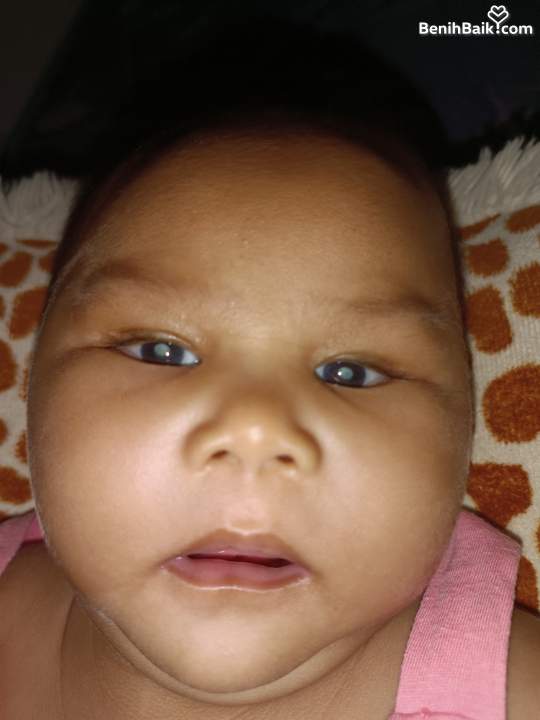 Usia Ines Kamaniya Birgith Sukma (1 thn) masih 2 bulan, saat pertama kali aku menyadari ada bintik putih di matanya, seperti mata kucing. Seiring waktu, anakku juga belum fokus menatap orang di hadapannya, bola matanya hanya berputar mengikuti arah suara dan matahari.