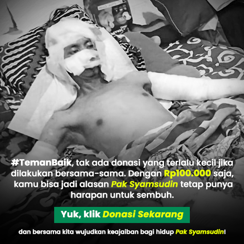 #TemanBaik, tak ada donasi yang terlalu kecil jika dilakukan bersama-sama. Dengan Rp100.000 saja, kita bisa jadi alasan Pak Syamsudin tetap punya harapan untuk sembuh. Yuk, klik Donasi Sekarang dan bersama kita wujudkan keajaiban bagi hidup Pak Syamsudin!